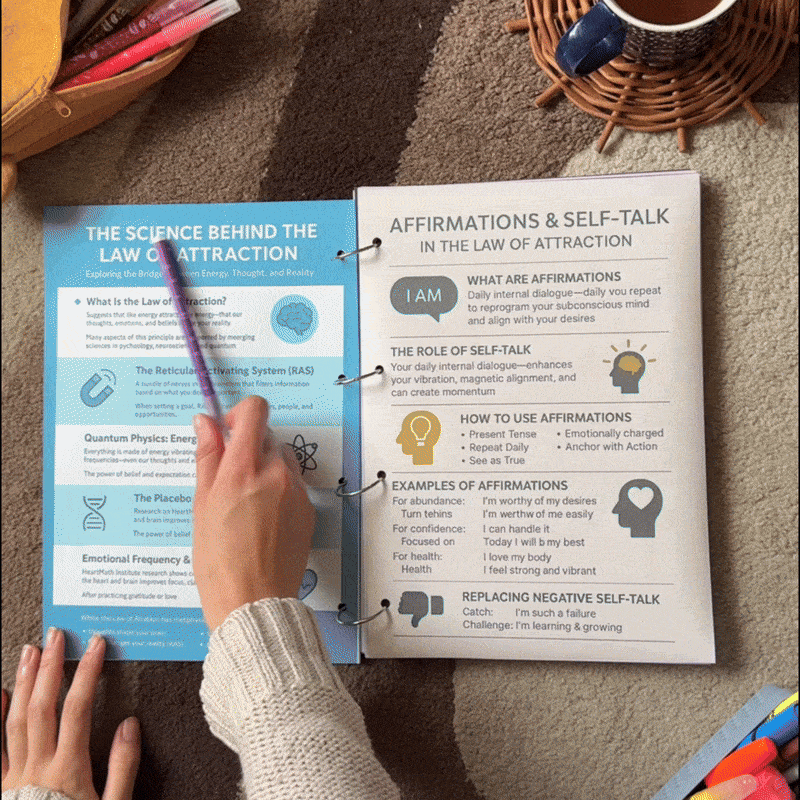 Our Law of Attraction Notes give you a clear, uplifting way to align your mindset with your desires. Say goodbye to doubt and confusion — and hello to a system that actually helps you attract what you truly want.